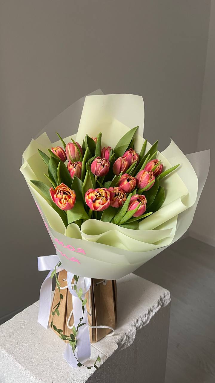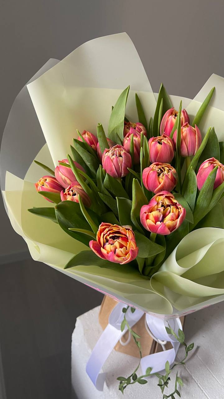 Букет из 15 пионовидных тюльпанов Букет из 15 пионовидных тюльпа...