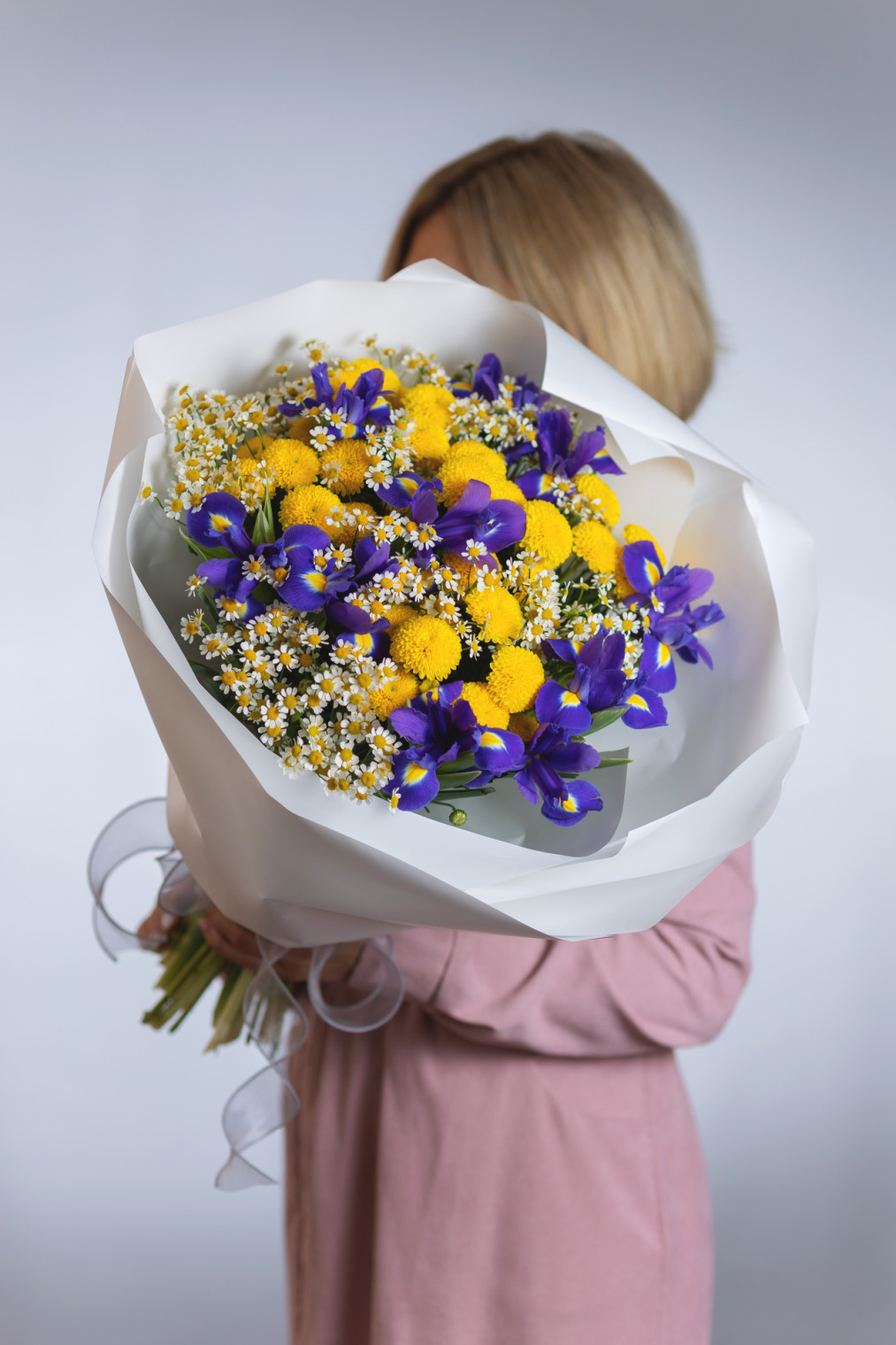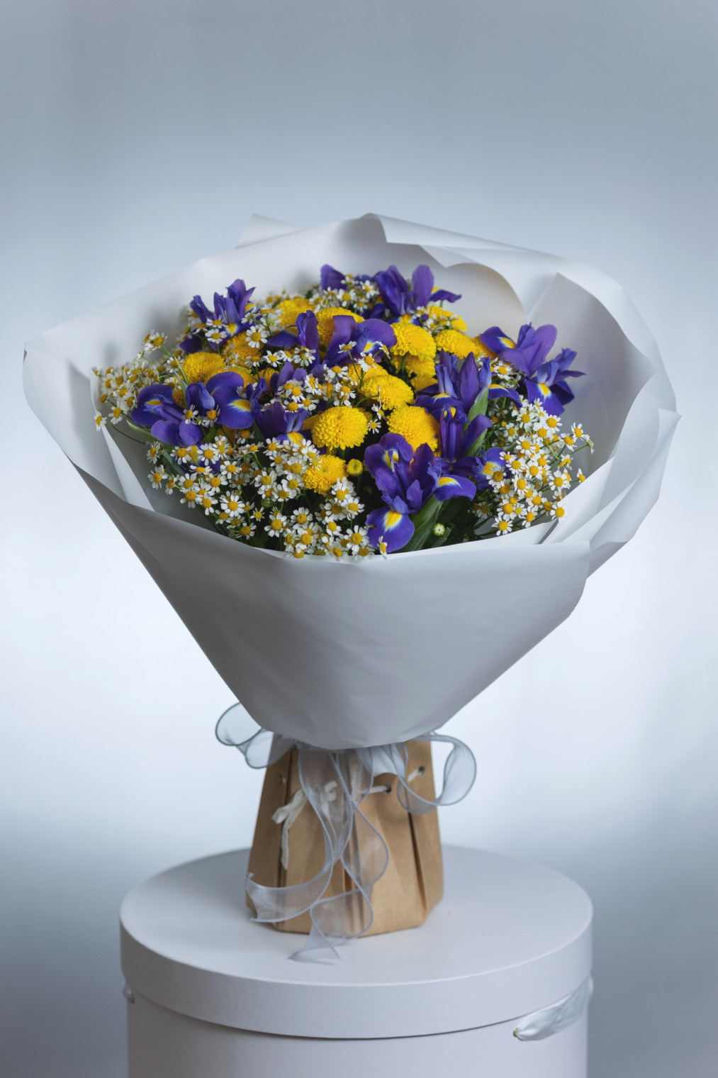 Букет с ирисами и хризантемой 1 фото Букет с ирисами и хризантемой