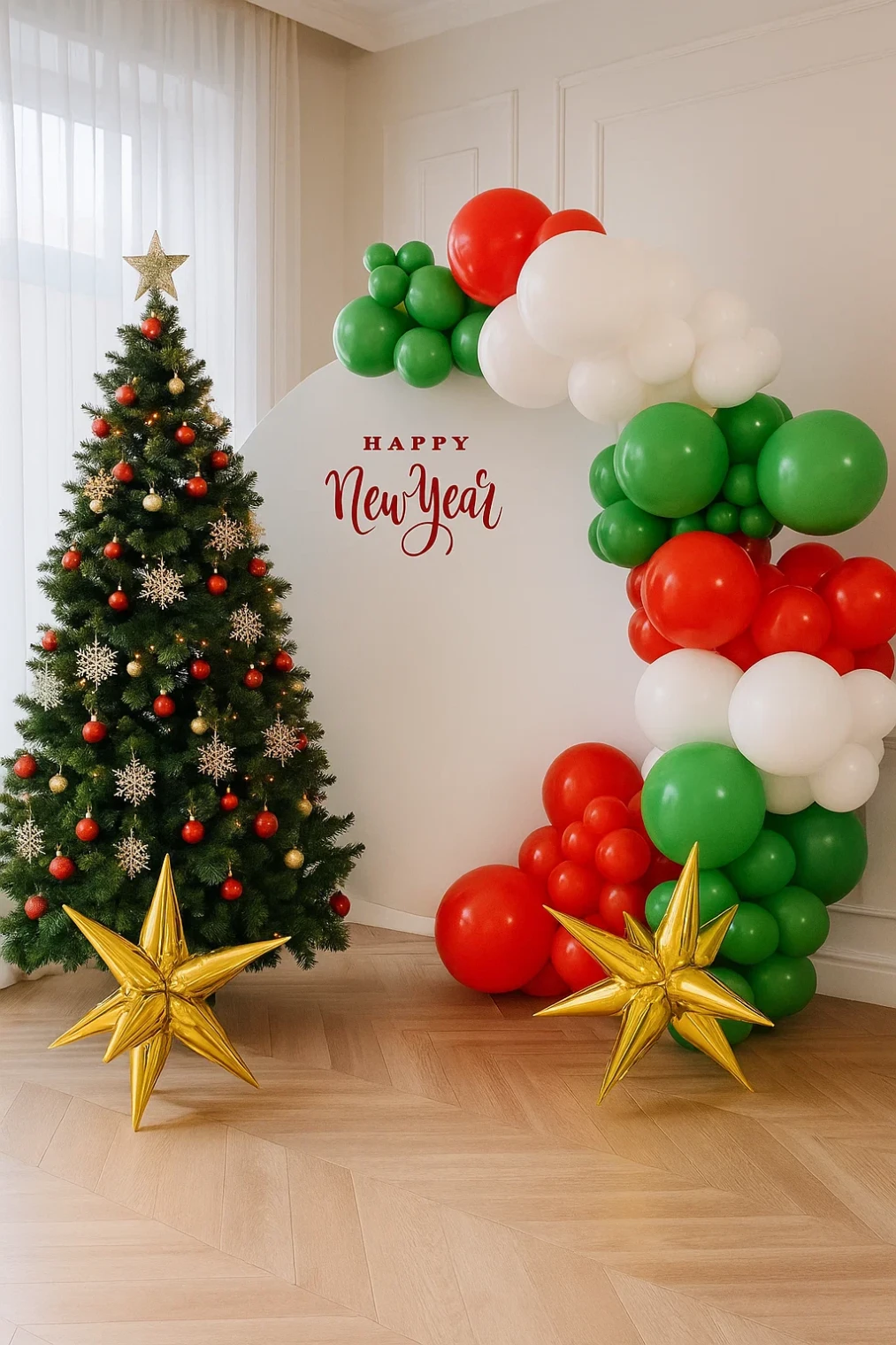 Фотозона из шаров «Елка и баннер» Фотозона из шаров «Елка и...