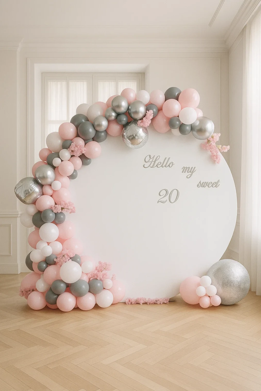 Фотозона из шаров «Серебристо-розовая» Фотозона из шаров «Серебр...