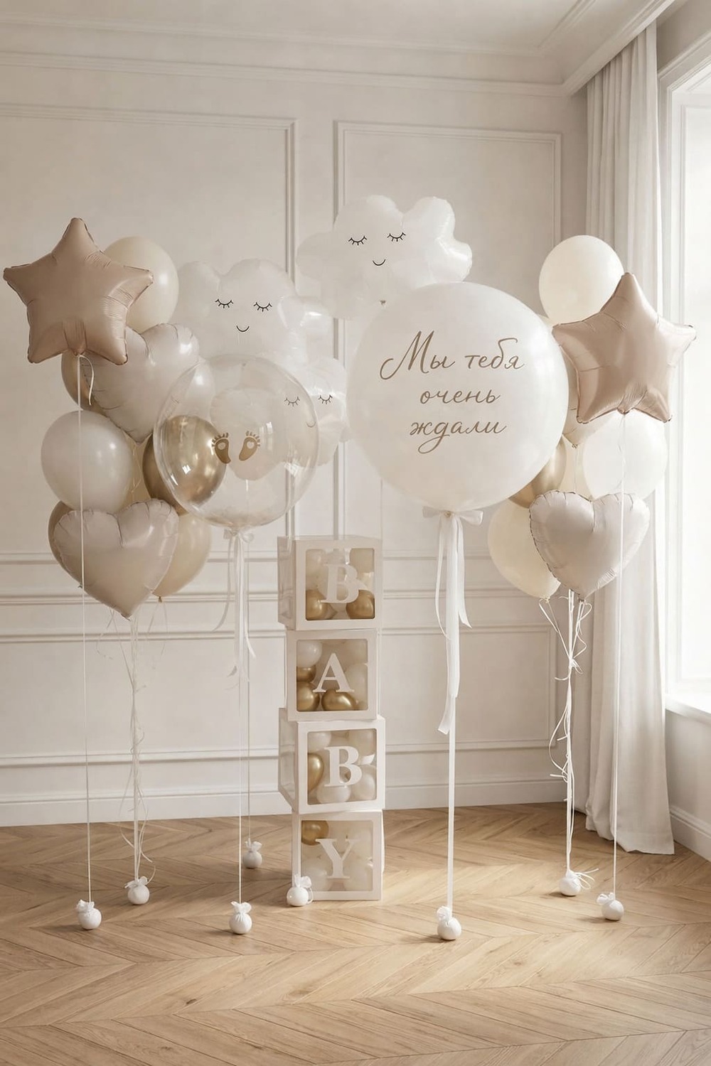 Набор шаров к выписке Бело-золотой Набор шаров к выписке «Бе...