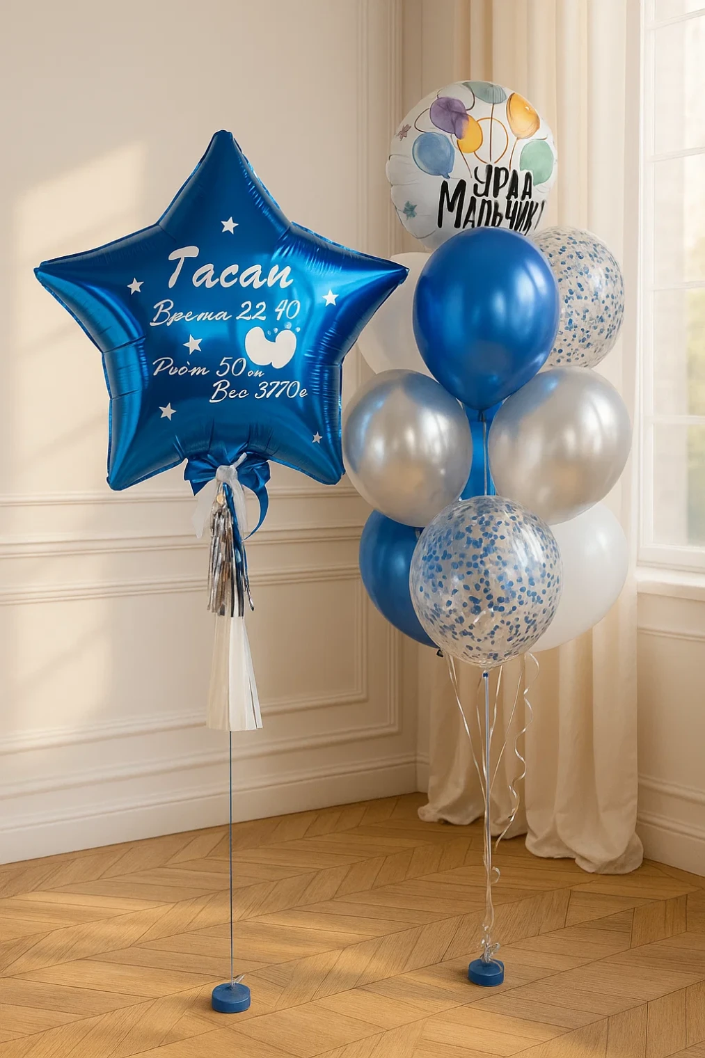 Шары и фольгированная фигура "Выписка малышу" Шары и фольгированная фигура &...