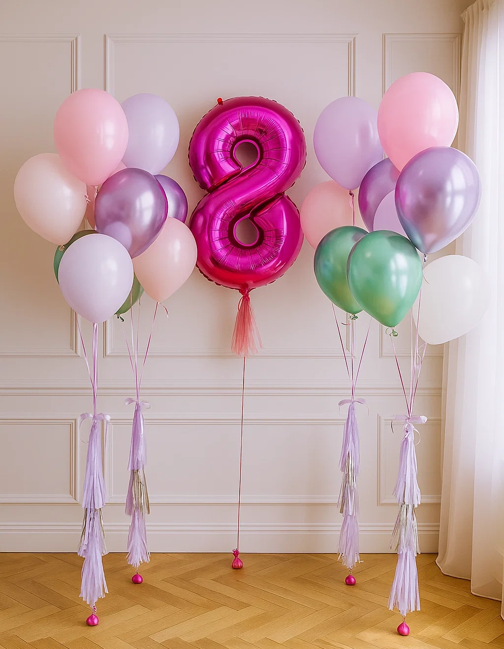 Цифра 8 из шаров и 4 фонтана Цифра 8 из шаров и 4 фонтана